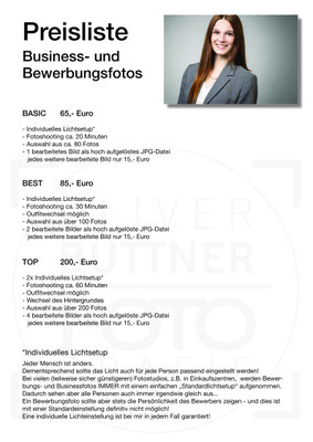 Unten stehend findest Du meine Preislisten für die wichtigsten Fotoshootings.